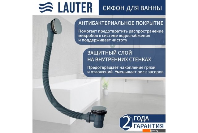 | Информация | - Сифон Lauter 21Y31010 — идеальное решение для вашей ванной комнаты. Этот трубный сифон с автоматическим механизмом ClickClack обеспечивает надежное и быстрое перекрытие сливного отверстия, что делает его удобным в использовании. - Изготовленный из качественного пластика и латуни, сифон отличается долговечностью и устойчивостью к коррозии. Гладкая глянцевая поверхность не только придает ему стильный вид, но и облегчает уход за изделием, благодаря функции самоочищения. - Сифон предназначен для горизонтального выпуска и подходит для стандартных сливных отверстий диаметром 52 мм. Высота гидрозатвора составляет 50 мм, что обеспечивает отличную скорость стока воды — до 55.2 л/мин. Это делает его отличным выбором для тех, кто ценит эффективность и надежность. - Обратите внимание на наличие перелива длиной 68 см, который предотвращает переполнение и обеспечивает дополнительную безопасность. - Сифон Lauter 21Y31010 — это не только функциональный, но и стильный элемент вашей ванной, который легко впишется в любой интерьер. Выбирайте качество и надежность с Lauter! |