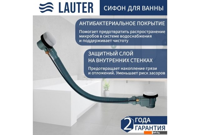 | Информация | - Сифон Lauter 21Y32002 — идеальное решение для вашей ванной комнаты. Этот трубный сифон обеспечивает надежный и быстрый отвод воды, что делает его незаменимым элементом сантехнической системы. Благодаря полуавтоматическому механизму перекрытия сливного отверстия, вы сможете легко управлять сливом, не беспокоясь о возможных протечках. - Изготовленный из качественного пластика и латуни, сифон отличается прочностью и долговечностью. Его матовая поверхность не только эстетична, но и легко очищается, что позволяет поддерживать идеальную чистоту в ванной. Самоочищающаяся функция делает уход за сифоном еще проще, что особенно важно для занятых людей. - Сифон Lauter 21Y32002 оснащен горизонтальным выпуском и имеет высоту гидрозатвора 50 мм, что обеспечивает отличную защиту от запахов. Скорость стока воды достигает 55.2 л/мин, что гарантирует быстрое удаление воды из ванны. Диаметр сливного отверстия составляет 52 мм, что соответствует стандартам и позволяет легко интегрировать сифон в существующую систему. - Обратите внимание, что данный сифон также включает в себя перелив, длина которого составляет 66 см. Это дополнительное преимущество, которое предотвращает переполнение ванны и обеспечивает безопасность использования. - Комплект поставки включает все необходимые элементы: трубу, поворотную накладку для перелива, пробку и колено. Сифон Lauter 21Y32002 — это надежный и функциональный выбор для вашей ванной, который обеспечит долгую и бесперебойную работу сантехнической системы. |