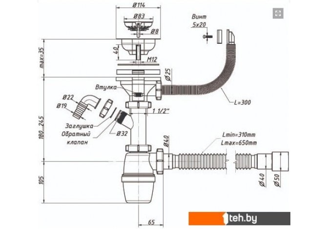 | Длина шланга системы перелива | 300 мм |