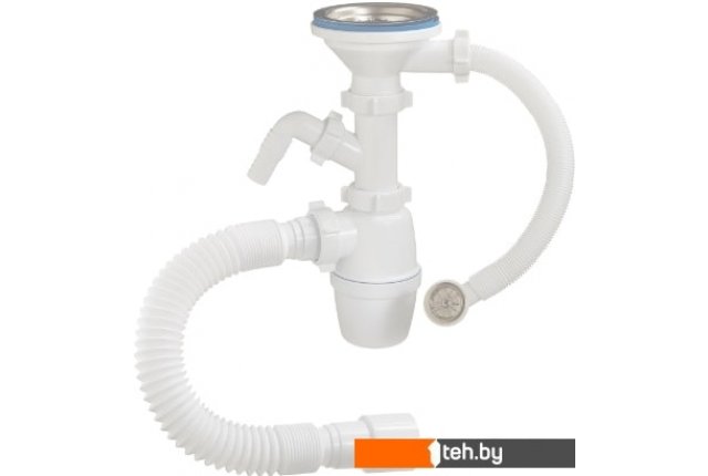 | Информация | Сифон с большим корпусом и отстойником, выпуском с нержавеющей чашкой D114 мм, переливом, отводом для слива от стиральной машины и гибкой трубой 40-40/50, для мойки с круглым переливом. |