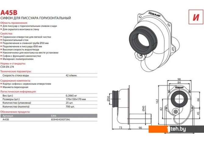 Если хотите купить Alcaplast A45B то следует уточнить все параметры и габариты модели перед покупкой. Представленые характеристики на сайте 1teh.by могут отличаться от действительных или указанных производителем. Описание, фото товара и технические характеристики представлены для справки.