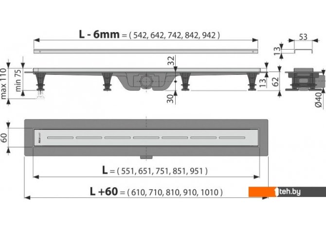 | Информация | Комбинированный гидрозатвор с водяным столбом 29 mm Скорость стока воды 27 l/min Сопротивление гидрозатвора против давления 640 Pa Диаметр сливной трубы 40 mm Минимальная толщина бетона 62 mm Общая высота монтажа 75 – 110 mm Класс нагрузки K3 300 kg Свойства. Пластиковый желоб с порогами из нержавеющей стали, которые плотно зафиксированы по всему периметру. Сливные трапы из особопрочного пластика, который устойчив к морозам и химии. Регулируемые монтажные ножки 0-35 мм, позволяют быстро и удобно установить желоб и выровнять его в горизонтальной плоскости. Повышенная устойчивость к химическим средствам. Идеальная совместимость с гидроизоляцией здания. Комбинированный гидрозатвор (собственное запатентованное решение) обеспечивает надежную защиту от проникновения запаха из канализации и после испарения воды в сифоне. Вручную легко чистящийся сифон, вплоть до сточной трубы. Решетка является частью комплекта. Самоклеящиеся ленты для качественной гидроизоляции. Материал: полипропилен обогащенный тальком. |