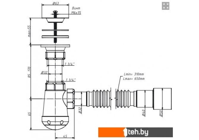 | Диаметр сливного отверстия | 32 мм |