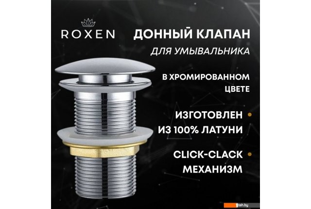 | Информация | Донный клапан Roxen P02 (chrome) с переливом с механизмом клик-клак (POP-UP), открывается и закрывается простым нажатием пальца на крышку. Изготовлен из высококачественной латуни, устойчивой к коррозии, что является гарантией высокого качества и долговечности изделия. Покрытие износоустойчиво, практично и непривередливо в уходе, не тускнеет и не оставляет на себе царапин. Характеристики: -материал корпуса: латунь -диаметр пробки 66 мм -глубина клапана 75 мм -диаметр слива: 3.2 см -цвет: хром Комплектация: -корпус донного клапана -хромированная стальная заглушка -силиконовая прокладка (2 шт) -гайка |