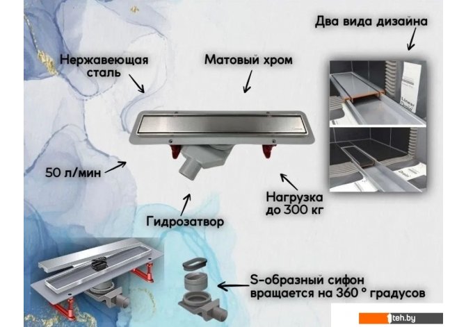 | Информация | - Трап для душа Tim Zst.1121.4002 выполнен в одном корпусе с гидрозатвором, что обеспечивает герметичность изделия и надежный барьер против запахов из системы канализации. - Прямоугольную форму решетки сантехнического устройства можно удачно обыграть при установке устройства вдоль стен, рядом с перегородкой и т.д. - Дренажное устройство имеет минимальную высоту, что обеспечивает простоту установки путем встраивания в пол ванной. - Конструкция имеет горизонтальный выпуск для прямого вывода стоков в канализацию. - Высокая пропускная способность делает лоток одним из лучших вариантов при эксплуатации как в частных домовладениях, так и помещениях коммерческого назначения — банях, душевых спортзалов и т.д. - Душевой лоток изготавливался с учетом воздействия бытовой химии, высокой влажности и температуры, поэтому его сливные элементы выполнены из нержавеющей стали. |