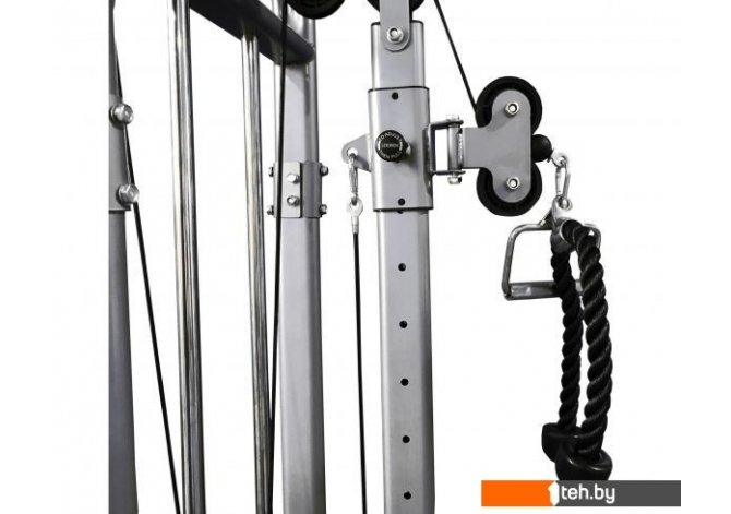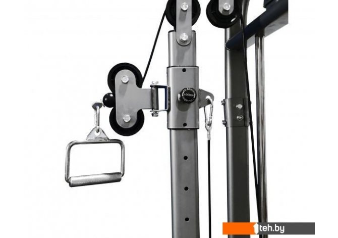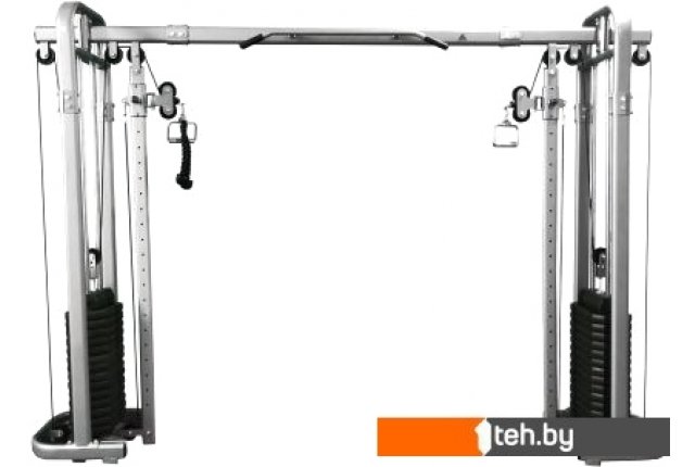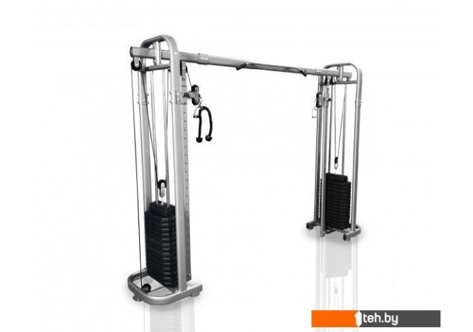 | Информация | Кроссовер оснащён двумя тягами — металлическими ручками с нескользящим хватом. Ручки регулируются по высоте в 21 положении: можно выполнять упражнения на разные группы мышц и варьировать угол тяги. Силовые стеки весом по 75 кг входят в комплектацию. Вес пластин — 4 и 5 килограмм. Общая нагрузка регулируется при помощи фиксатора одним движением руки. Плавность хода стеков гарантируют ролики на подшипниках. |