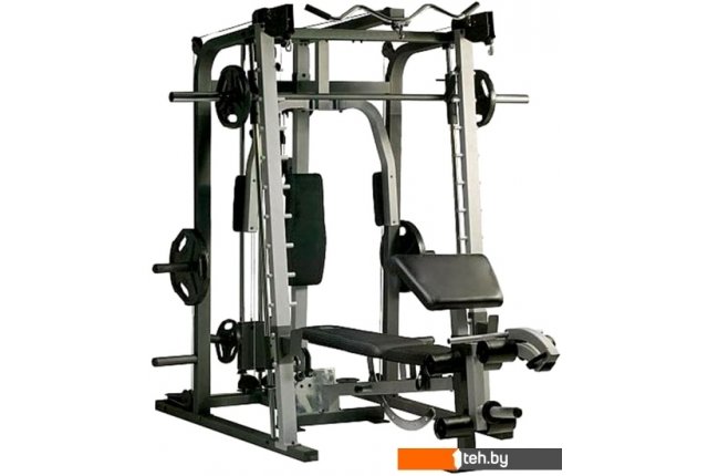 | Информация | Тренажер предназначен для выполнения различных силовых упражнений: Машина Смита, тяга сверху / снизу, баттерфляй, парта для бицепса, сгибание / разгибание, жим лежа на скамье дополнительной штанги (опция). Изготовлена из прочного стального профиля. Отдельно стоящая скамья с партой для бицепса и рычагом для тренировки ног (сгибание / разгибание). Спинка скамьи позволяет отрегулировать угол наклона. Сиденье так же регулируется по высоте. Кронштейны для установки штанги и предохранители регулируются по высоте. Для хранения весов (дисков) предусмотрены 4 держателя, посадочный размер 51 мм. |