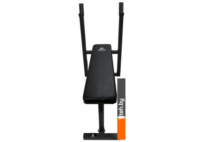 | Информация | Силовая скамья со стойками под штангу DFC Homegym - домашний тренажер для выполнения силовых упражнений. Предназначен для выполнения упражнений жим лежа со штангой (гриф и диски приобретаются отдельно). Прямая скамья позволяет выполнять баттерфляй с гантелями для грудных мышц. Так же возможно делать упражнение подъем ног к туловищу, руками в качестве упора взяться за стойки. |