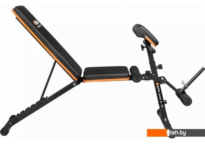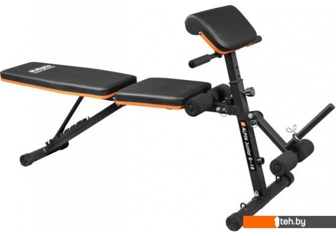 | Информация | Силовая скамья Alpin Junior G-18 рассчитана на вес пользователя до 110 кг. За счет широких возможностей по регулировке скамью можно использовать как стандартную скамью для жима так и как скамью для упражнений с гантелями и скамью для пресса с отрицательным углом. Регулируемая скамья скота позволит вам качественно проработать мышцы бицепсов. Скамья оборудована рычагом для тренировки ног с отягощениями. Регулировка спинки доступна в диапазоне от 10 до 225 градусов. Также скамью можно использовать в качестве гиперэкстензии. Входящие в комплект эспандеры позволят вам разнообразить тренировки. Складная конструкция обеспечит минимум места для хранения. |