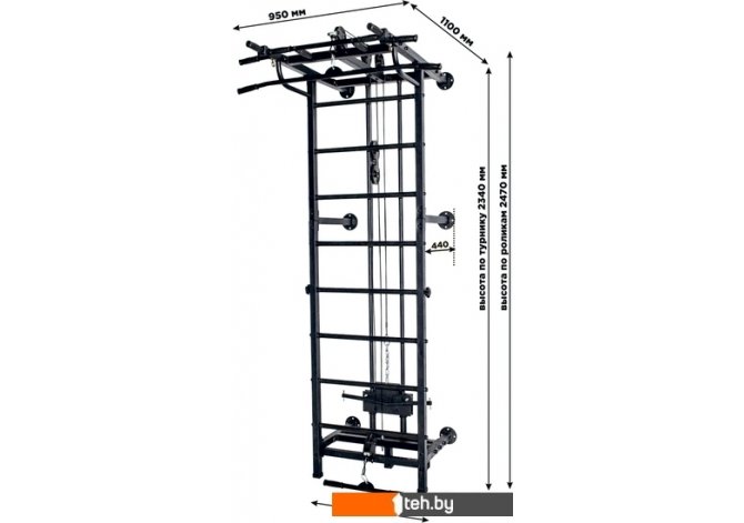 | Информация | Ваш домашний уголок здоровья: - шведская стенка - турник - брусья (с подвесом для штанги) - скамья для пресса (и штанги) - верхняя тяга - нижняя тяга Добавьте к этому брусья, гири, штангу и вот вы уже в своём личном фитнес-клубе! Крафт создан для: - физкультуры и поддержания спортивной формы - для силовых тренировок и набора массы - для реабилитации после травм Так же упражнения с тягой (верхней и нижней) используются в лечебных комплексах для укрепления мышц спины и для избавления от болей в плечах и пояснице. |