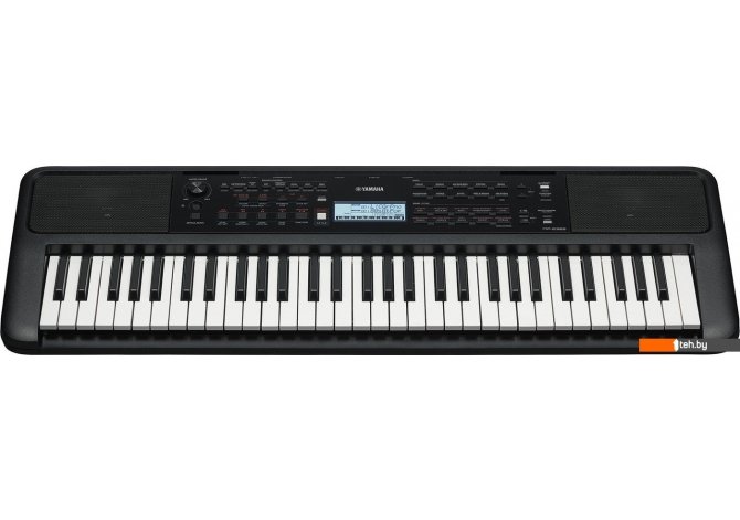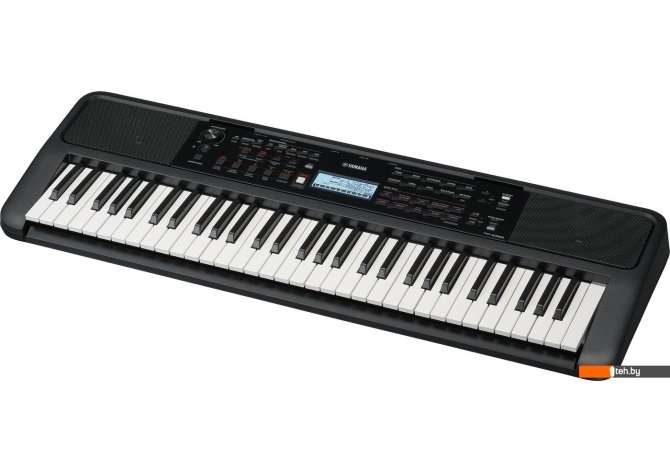 | Информация | Yamaha PSR-E383 - это универсальный синтезатор начального уровня, который сочетает в себе компактность, богатые возможности и качественное звучание. Данный инструмент прекрасно подходит как для начинающих музыкантов, так и для более опытных исполнителей, ищущих портативное устройство для занятий. Клавиатура синтезатора имеет 61 клавишу с чувствительностью к нажатию, которая обеспечивает выразительность при исполнении музыкальных произведений. Три уровня чувствительности позволяют подобрать наиболее комфортный вариант, а при необходимости клавиатуру можно перевести в пассивный режим. Основой звучания синтезатора является движок AWM Stereo Sampling, который воспроизводит богатое и детализированное звучание. Полифонии на 48 голосов будет вполне достаточно для обучения, аккомпанемента и исполнения несложных произведений без потери нот. А за сбалансированный и четкий звук отвечает встроенные акустическая система, представленная двумя динамиками диаметром 12 см с мощностью по 2.5 Вт. В арсенале PSR-E383 имеется 650 тембров, включающих звуки клавишных, гитар, духовых и ударных инструментов, а также специальные тембры Super Articulation Lite, которые позволяют реалистично воспроизводить нюансы звучания различных инструментов, например, резонанс нейлоновых струн. Автоаккомпанемент синтезатора представлен 260 стилями, которые охватывают самые разные музыкальные жанры. Функции Smart Chord и Auto Chord Play автоматически адаптируют аккомпанемент под ваше исполнение, что значительно упрощает игру для начинающих и делает исполнение более интересным. Режим дуэта позволяет двум музыкантам играть одновременно на оной клавиатуре, а функции наложения и разделения тембров еще больше расширяют творческие возможности. Для самостоятельных занятий предусмотрено 125 встроенных песен, которые можно разучивать с помощью трехуровневого режима обучения. Эта система подойдет даже тем, кто никогда ранее не играл на клавишных инструментах. Уникальная функция Keys to Success помогает освоить сложные музыкальные фразы поэтапно, уделяя внимание наиболее трудным участкам произведения. Возможность записи исполнения (до 5 песен, 2 дорожки и около 10 000 нот) позволяет слушать и анализировать свою игру для дальнейшего совершенствования. Для максимально продуктивных занятий и творческого самовыражения синтезатор предлагает широкий спектр эффектов, включая реверберацию, хорус, 41 эффект DSP, а также эквалайзер. Кроме того, встроенные 26 типов гармонии и 152 типа арпеджио помогают создавать интересные музыкальные фразы и мелодии. Отметим, что все основные настройки инструмента можно сохранить для быстрого доступа к ним в будущем. Синтезатор имеет удобную панель управления с дисплеем, что обеспечивает легкий и понятный доступ ко всем параметрам. Подключение к компьютеру или смартфону осуществляется через порт USB-B, который поддерживает режим Rec'n'Share, позволяющий одновременно записывать звук с синтезатора и видео с подключенного устройства. Для наушников или внешней акустической системы предусмотрен стандартный выход Jack 1/4", а для подключения внешних MP3 устройств доступен вход Aux mini-jack 1/8". Данная модель также имеет вход для педали сустейна Jack 1/4". Питание синтезатора осуществляется от сети или шести батареек AA, что делает его идеальным для использования в любом месте. А функция автома