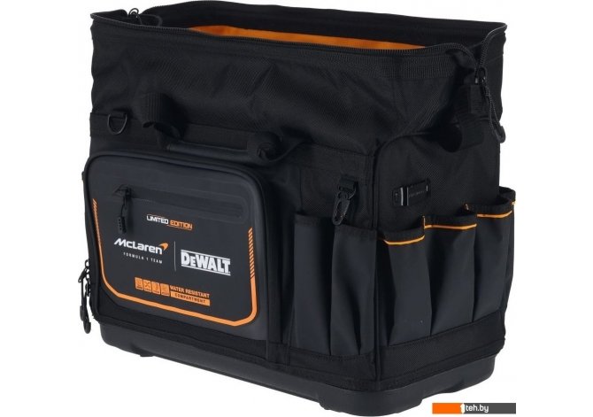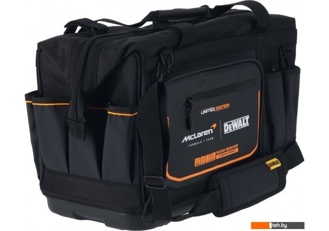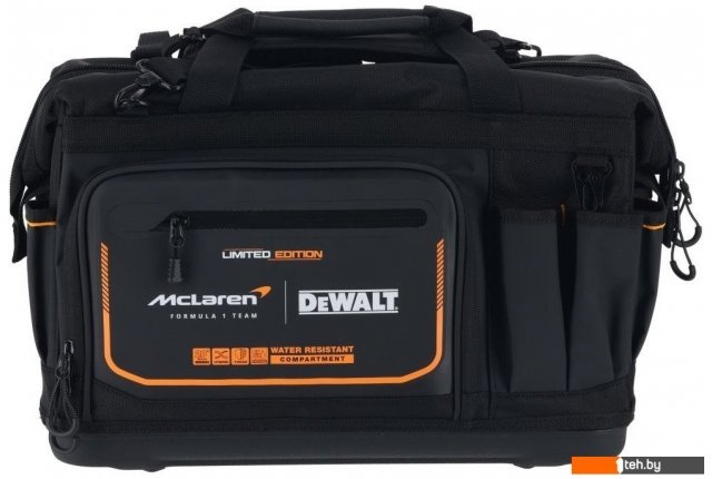 | Информация | Всемирно известный бренд DeWALT стал официальным партнером по поставке инструментов для команды McLaren Formula 1. В знак дружеских отношений компания DeWALT недавно выпустила лимитированную серию продукта, в том числе фирменную cумку для инструментов DWST60104-9. Модель оснащена 33 отделениями под различные нужды. Материал сумки имеет степень защиты IP54, устойчив к воде и грязи благодаря специальной пропитке. Сумка с закрытым верхом и жестким основанием создана для обеспечения быстрого и легкого доступа к вашим инструментам. |