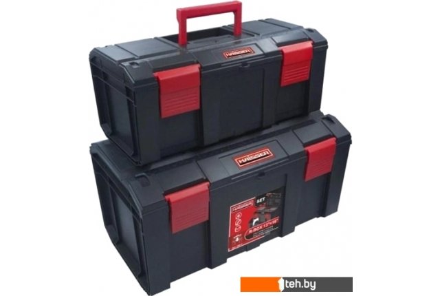| Информация | Набор ящиков для инструментов R-BOX Haisser - в комплекте два ящика разного размера. Ящики выполнены из прочного, высококачественного, противоударного пластика с надежной транспортировочной ручкой. Размер 33,3х18,7х14,7 см и 38,5х23х20,4 см. |