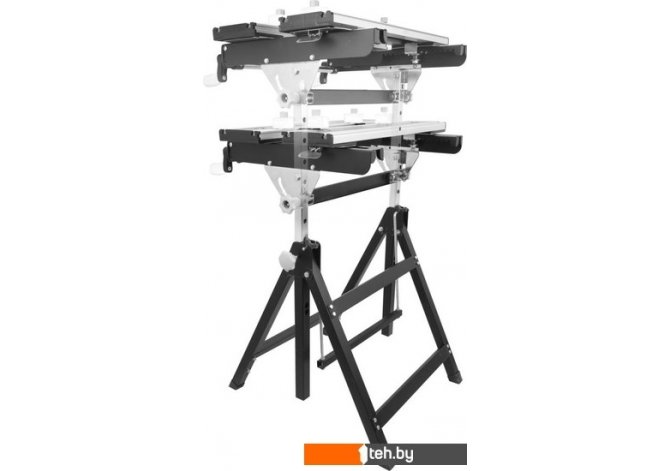 | Информация | ? Четырехпозиционная наклонная рабочая поверхность (0°, 25°, 50°, 80°). ? 7 уровней регулировки по высоте для выполнения любых видов работ. ? Стальная и алюминиевая рабочая поверхность. ? Мгновенное разблокирование подъемных досок для увеличения площади крепления. ? Сдвижная конструкция зажимов для широкого применения.  |