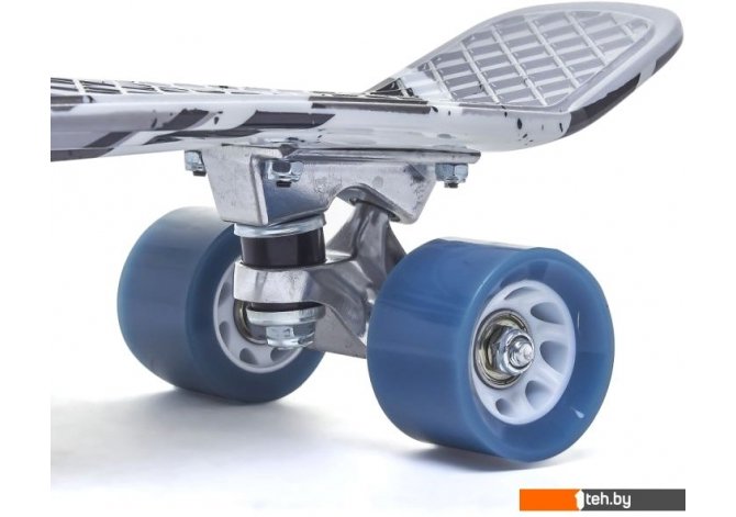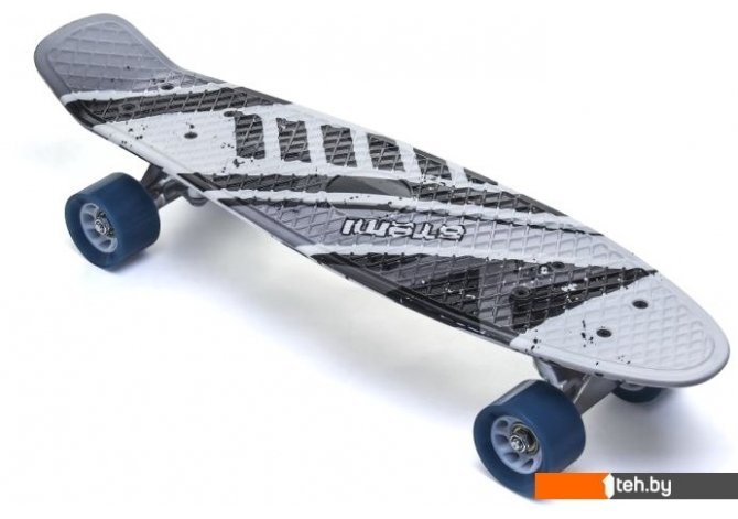 | Информация | Дека: 57x15 см, высокопрочный пластик; Рисунок: аквапринт; Колеса: 60*40 мм, PU, жесткость 72A; Амортизатор PU, жесткость: 85A; Трак: алюминий, размер 3,25", Подшипник: ABEC-7; Высота скейта 10 см и дистанция между колесами 32 см. Максимальная нагрузка: 100 кг. Вес: 1,7 кг. |
