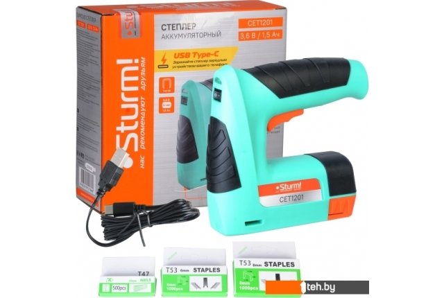 | Комплектация | Аккумуляторный степлер, скобы 6 мм (1000 шт), скобы 8 мм (1000 шт), гвозди 10 мм (500 шт), кабель USB Type-С, инструкция по эксплуатации, инструкция по безопасности |