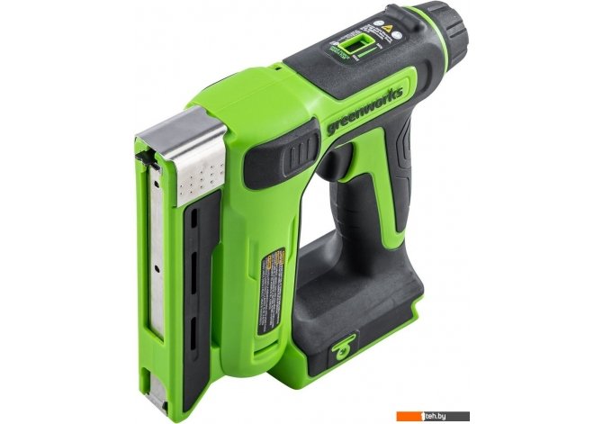 | Информация | Степлер аккумуляторный Greenworks 24V G24CS10 (арт.3400107) предназначен для декоративных и отделочных работ. В качестве оснастки подходят скобы типа Т53 длиной 6-14 мм или гвозди типа Т47 длиной до 15 мм. Бесключевая регулировка глубины забивания позволяет предохранить поверхность материала от повреждения. Прорезиненная рукоятка для надежного хвата. Контактный датчик блокирует работу, если степлер не опирается на рабочую поверхность |