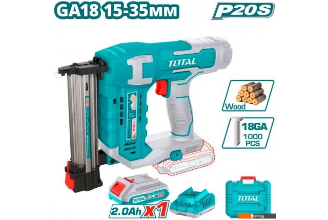 | Комплектация | - Гвоздезабивной пистолет - 1 шт. - Аккумулятор TFBLI2001 2,0 Ач - 1 шт. - Зарядное устройство TFCLI2001E - 1 шт. - Гвозди - 1000 шт. - Кейс. |