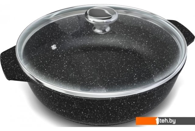 | Информация | Жаровня – это разновидность глубокой сковороды, имеющая две цельнолитые ручки. Корпус жаровни изготовлен из алюминия методом литья с кристаллизацией под давлением, такой корпус не подвержен деформации и обеспечивает равномерный нагрев. Также жаровню отличает большой диаметр рабочей поверхности, толстые стенки и утолщенное дно. Тепло в жаровне распределяется равномерно, а пища подвергается термической обработке постепенно, не пригорая и не прилипая к поверхности посуды. Благодаря этому жаровня многофункциональна и удобна в эксплуатации, в ней можно жарить, тушить, варить, томить, пассеровать и запекать. Жаровня имеет многослойное антипригарное покрытие на водно-кремниевой основе. Покрытие не содержит PFOA (перфтороктановую кислоту), безопасно для контакта с пищевыми продуктами, а также в производстве и для окружающей среды. Качественное антипригарное покрытие с эффектом натурального камня «Черный гранит» позволяет избежать пригорания продуктов даже без использования масла. Жаровня комплектуется крышкой из жаростойкого стекла с ободом из высококачественной нержавеющей стали. |