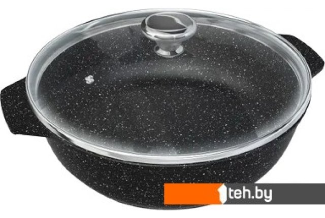 | Информация | Жаровня – это разновидность глубокой сковороды, имеющая две цельнолитые ручки. Корпус жаровни изготовлен из алюминия методом литья с кристаллизацией под давлением, такой корпус не подвержен деформации и обеспечивает равномерный нагрев. Также жаровню отличает большой диаметр рабочей поверхности, толстые стенки и утолщенное дно. Тепло в жаровне распределяется равномерно, а пища подвергается термической обработке постепенно, не пригорая и не прилипая к поверхности посуды. Благодаря этому жаровня многофункциональна и удобна в эксплуатации, в ней можно жарить, тушить, варить, томить, пассеровать и запекать. Жаровня имеет многослойное антипригарное покрытие на водно-кремниевой основе. Покрытие не содержит PFOA (перфтороктановую кислоту), безопасно для контакта с пищевыми продуктами, а также в производстве и для окружающей среды. Качественное антипригарное покрытие с эффектом натурального камня «Черный гранит» позволяет избежать пригорания продуктов даже без использования масла. Жаровня комплектуется крышкой из жаростойкого стекла с ободом из высококачественной нержавеющей стали. |