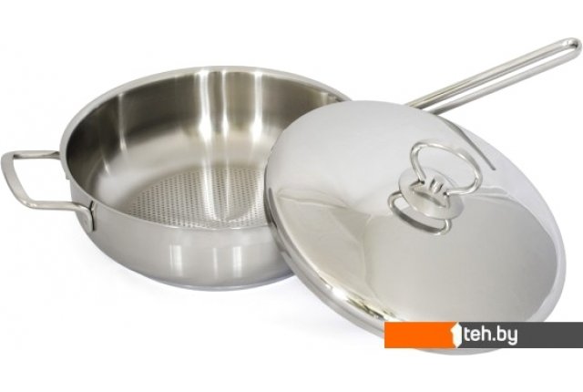 | Информация | Ненагревающиеся ручки. Благодаря тому, что ручки присоединены к ёмкости с помощью точечной контактной сварки, они имеют маленькую площадь контакта и поэтому при правильном использовании кастрюли они не нагреваются. Толстое трехслойное дно. Для того чтобы обеспечить возможность комфортного использования кастрюли без пригорания продуктов, в частности густых блюд (каш, варенья), необходимо обеспечить хорошее распределение тепла от источника нагрева по всему дну кастрюли. Для этого в дно посуды помещается алюминиевый диск, ведь алюминий имеет гораздо лучшую теплопроводность, чем нержавеющая сталь. В посуде «КУХАР» части дна скрепляются между собой методом диффузионной сварки, что позволяет избежать образования полостей по краям дна и попадания туда воды и грязи. Подходит для всех типов плит и посудомоечных машин. Можно использовать не только на газовых и обычных электрических плитах, но и на стеклокерамике и на индукционных панелях. Основная ёмкость кастрюли сделана из высококачественной нержавеющей стали AISI 304, однако эта сталь немагнитна и поэтому не может быть использована на плите с индукционным нагревом. Специально для этого покрывающая капсула дна кастрюли сделана из ферритной стали AISI 430, что позволяет использовать посуду «КУХАР» без каких-либо ограничений по типам плит. |