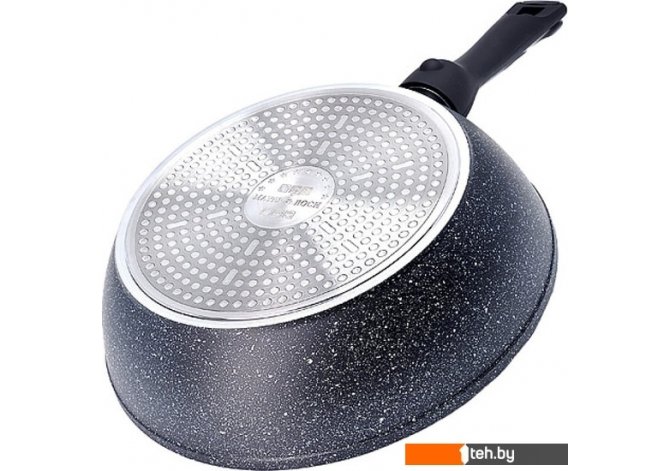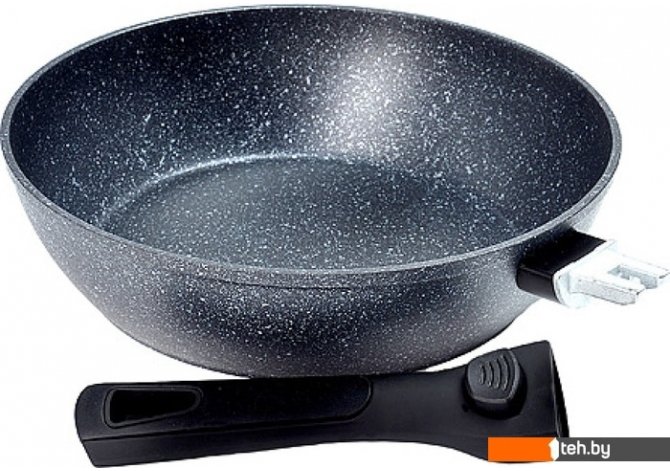 | Информация | Сковорода с мраморной крошкой и съемной ручкой выполнена из качественного штампованного алюминия и снабжена антипригарным покрытием особой прочности. Покрытие антипригарное жаропрочное, защищает сковороду от царапин, является экологически чистым и полностью безопасным, без вредных соединений и примесей. За счет того, что пища не пригорает и не пристает к покрытию сковороды, ее легко и быстро мыть. Прочное индукционное дно сковороды устойчиво к повреждениям и деформации. Эргономичная ручка из бакелита не нагревается и не скользит. Такая сковорода является незаменимой для жарки и тушения различных блюд. |