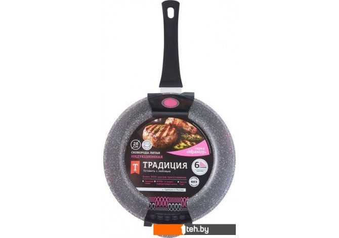 Фотографии, описание и технические характеристики модели сковородоки Традиция Мрамор индукция ТМ2281И взяты из открытых источников, официального сайта производителя или представительства Традиция в Республике Беларусь.