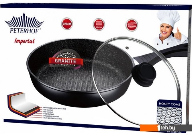 Фотографии, описание и технические характеристики модели сковородоки Peterhof PH-15402S-26 взяты из открытых источников, официального сайта производителя или представительства Peterhof в Республике Беларусь.