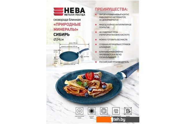 Фотографии, описание и технические характеристики модели сковородоки Нева металл посуда (НМП) Сибирь 246224 взяты из открытых источников, официального сайта производителя или представительства Нева металл посуда (НМП) в Республике Беларусь.