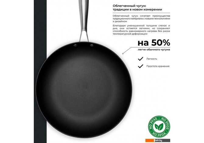 | Информация | - Инновационное покрытие Titanium Enamel обеспечивает уникальные свойства благодаря специальной плазменной обработке, создающей пористую структуру. Масло проникает в поры, формируя естественный антипригарный слой. Это покрытие устойчиво к царапинам, коррозии и высоким температурам, не выделяя вредных веществ при нагреве. Важно отметить, что оно не содержит PFOA, PFAS и PFOS. - Чугунная сковорода обладает выдающимися теплообменными свойствами, что позволяет продуктам готовиться равномерно и сохранять свои вкусовые качества. Облегченный чугун сочетает традиционные преимущества с современными технологиями и дизайном. Уменьшенная толщина стенок и дна делает сковороду легкой, но при этом она сохраняет способность равномерного нагрева без риска деформации. - Эргономичная стальная ручка обеспечивает надежный захват и предотвращает скольжение, что делает сковороду удобной в использовании. Ручка крепится на клепках и не нагревается во время готовки. Внешнее покрытие сковороды выполнено в глубоком синем цвете, что придает ей стильный вид. - Сковороду можно использовать на различных типах плит: газовых, электрических, керамических и индукционных. Для сохранения антипригарных свойств рекомендуется ручная мойка, так как мытье в посудомоечной машине может сократить срок службы. Инструкция по первому использованию сковороды прилагается на упаковке. - Обратите внимание на рекомендации по уходу для продления срока службы изделия. |