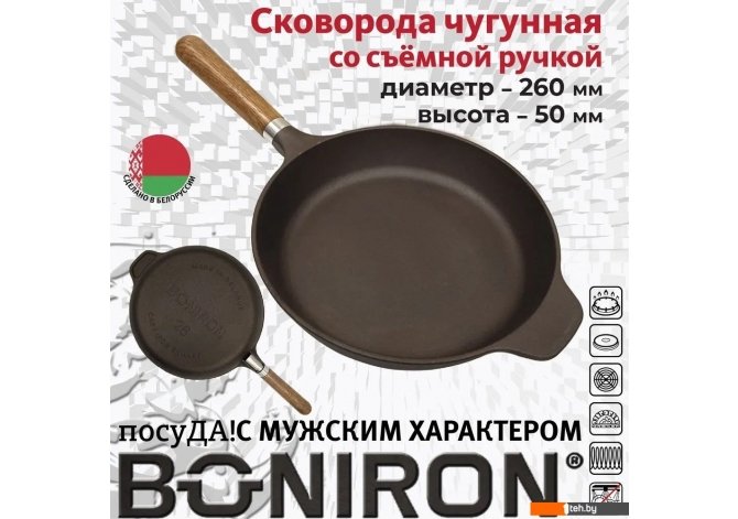 Фотографии, описание и технические характеристики модели сковородоки Boniron ВС26-02 взяты из открытых источников, официального сайта производителя или представительства Boniron в Республике Беларусь.