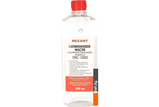 | Информация | Полиметилсилоксановая жидкость ПМС-10000 (ГОСТ 13032-77) REXANT – бесцветная, прозрачная, химически инертная и коррозионностойкая силиконовая жидкость без запаха. В отличие от минеральных или синтетических масел, данная жидкость обладает превосходными электроизоляционными, антиадгезионными и пеногасящими свойствами. Область применения: Смазывание резиновых уплотнений и обработка высоковольтных проводов. Основа низкотемпературных и высокотемпературных: а) консистентных смазок, паст и вазелинов; б) моторных и трансмиссионных масел. В качестве разделительной (металл-пластик, пластик-резина и т. п.) и антиадгезионной смазки пресс-форм при формовании и экструдировании изделий из пластических материалов: а) при производстве резинотехнических и пластмассовых изделий; б) в шинной промышленности; в) для конвейерных лент; г) при производстве каучука; д) при производстве пластмассовых изделий. Жидкость для приборов и механизмов: а) охлаждающая; б) амортизационная; в) гидравлическая; г) демпфирующая; д) диэлектрическая; е) антиадгезионная; ж) разделительная. Как теплоноситель с диапазоном температур –100...+300 °C. Как добавка в политуры и различные средства бытовой химии в: а) полирующие составы и мастики; б) полирующие составы для мебели; в) полирующие составы для автомобилей; г) средства бытовой химии; д) косметические средства, основа кремов от загара, губной помады и прочее; е) составы по уходу за волосами; ж) составы по уходу за обувью, кожаных изделий; з) мастики для пола. Замасливатель для шерстяных полуфабрикатов в чесальном и ткацком производствах. Для силовых трансформаторов, выпрямителей, магнетронов и т. д., как охлаждающая и диэлектрическая жидкость (в т. ч. замена совтола-10). Как жидкость для повышения прочности и бездефектности при обработке стеклоизделий и стерилизации медицинских инструментов. Основа пеногасителей для: а) текстильной промышленности; б) буровых растворов нефтяной и газовой промышленности; в) для любых процессов и производств; г) пищевой промышленности (стабилизирующая, противопенная добавка Е900). В текстильной промышленности для смягчения тканей из хлопка и синтетики, придания техническим тканям свойств водоотталкивания и абразивной прочности. Для производства различных эмульсий и добавок при изготовлении красок, герметиков, защитных и полирующих покрытий, клеев и т. д. Таким образом, области применения силиконовых жидкостей постоянно расширяются благодаря улучшению технологии производства и уменьшении стоимости ее производства. Основные свойства: Жидкости ПМС стойки к высоким и низким температурам, не образуют остатков на обрабатываемых поверхностях, предотвращают прилипание термопластичных материалов друг к другу. Стабильность физических свойств жидкостей ПМС в широком диапазоне рабочих температур –40...+200 °С Отличные характеристики вязкости/температуры, высокая сжимаемость и сопротивление сдвигу. Жидкости ПМС придают отличные свойства скольжения и гидрофобности пластмассам и резинам, уменьшают трение поверхностей. Электрические характеристики жидкостей ПМС практически неизменны при высоких и низких температурах в широком диапазоне частот. Образуют гидрофобную защитную пленку. Стойкость к радиации. Низкое поверхностное натяжение, сильные гидрофобные свойства. Температура засты
