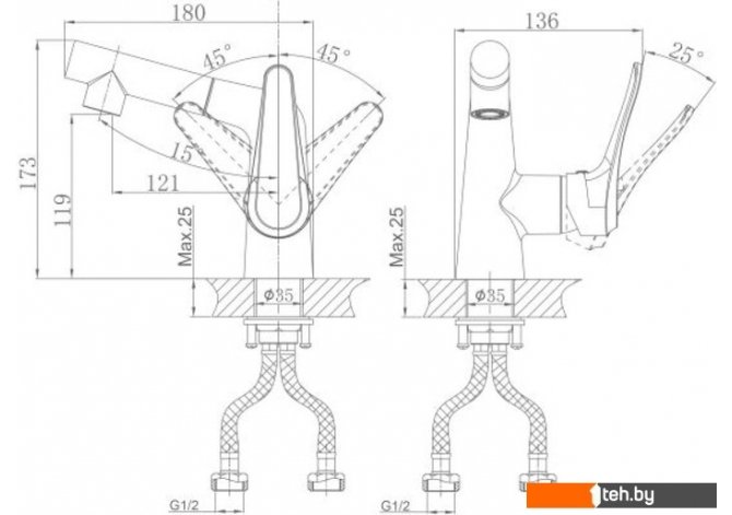 | Длина (вылет) излива | 121 мм |