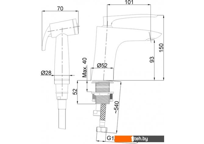 | Высота | 150 мм (смесителя) |