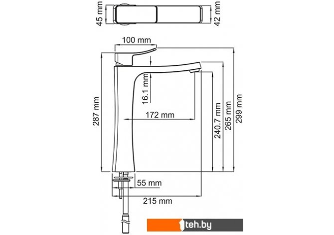 | Длина (вылет) излива | 172 мм |