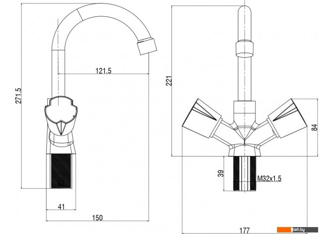 | Длина (вылет) излива | 121.5 — 121.5 мм |