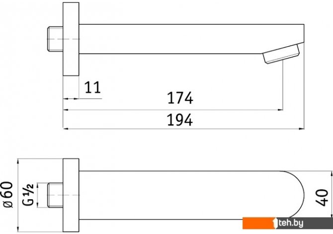 | Длина (вылет) излива | 174 мм |
