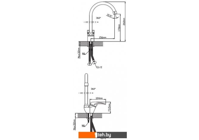 | Длина (вылет) излива | 156 мм |