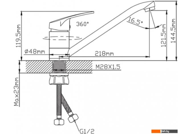| Высота излива | 121.5 мм |