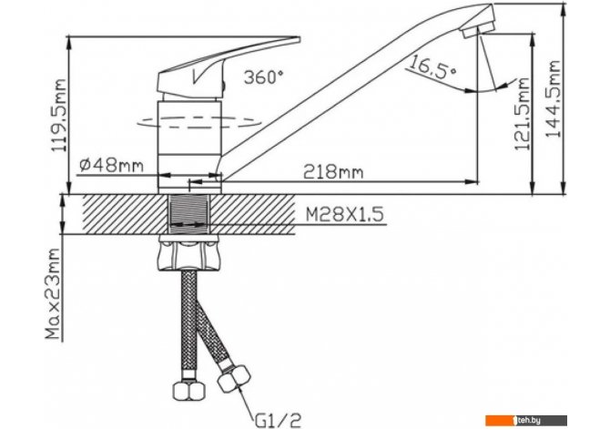 | Высота излива | 121.5 мм |