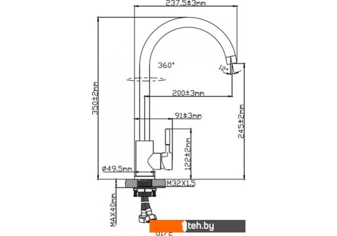 | Высота излива | 280 мм |