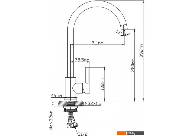 | Высота излива | 280 мм |