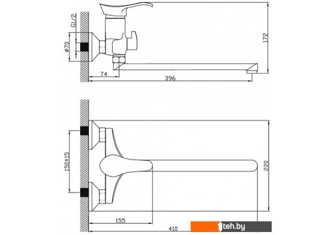| Длина (вылет) излива | 396 мм |