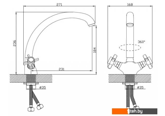 | Поворотный излив | Да 360 ° |