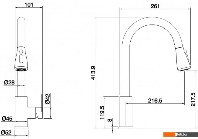 | Выдвижной/гибкий излив | Да |