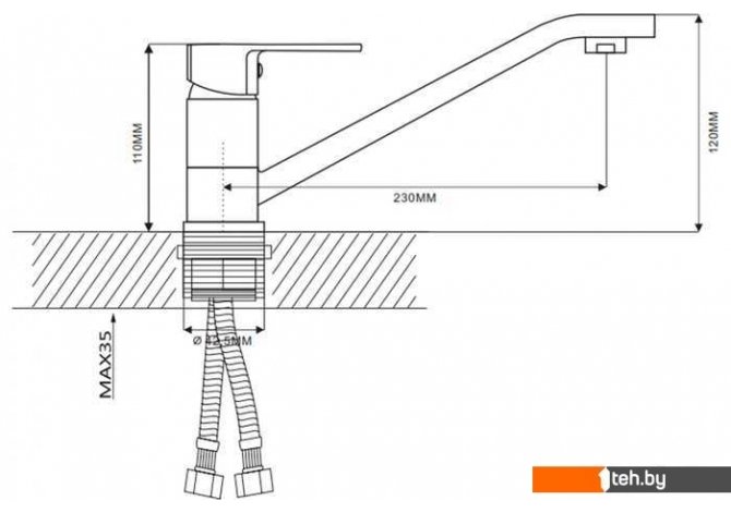 | Длина (вылет) излива | 230 мм |