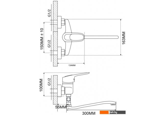 | Длина (вылет) излива | 300 мм |