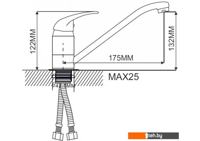 Информация | ? Смеситель Ekko EM4903 с гайкой хром предназначен для крепления на изделие или прилегающую поверхность столешницы. ? Крепится при помощи резьбовой шпильки и стальной прижимной шайбы особой конфигурации. ? Управление водой производится при помощи керамического картриджа. ? Поворотный излив с аэратором и длиной, подходящей для большинства бытовых кухонных моек. ? Комплект поставки включает гибкую подводку из двух резиновых шлангов в металлической оплетке. |
