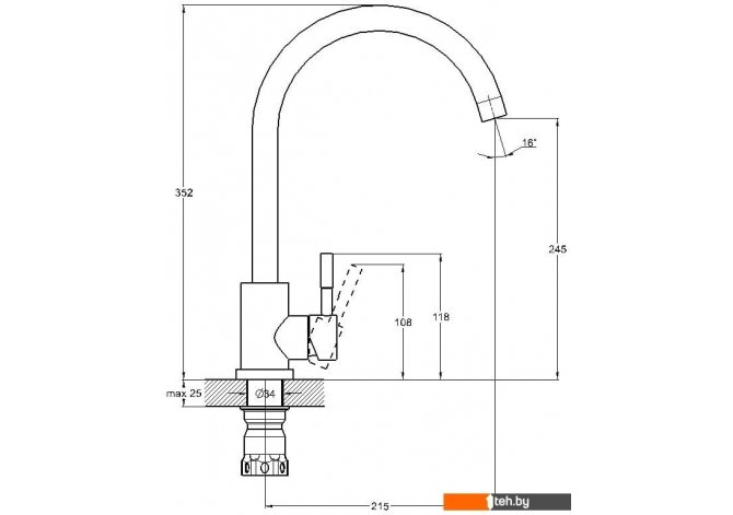 | Длина (вылет) излива | 215 мм |