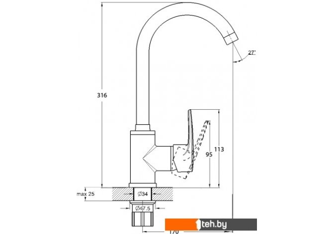 | Длина (вылет) излива | 170 мм |